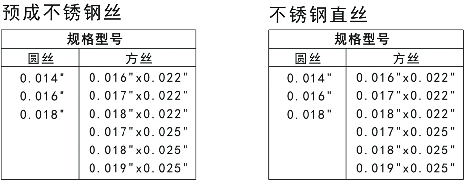 預(yù)成不銹鋼絲 預(yù)成不銹鋼絲的剛度及弓形有利于控制牙弓形態(tài)和牙齒的精確定位